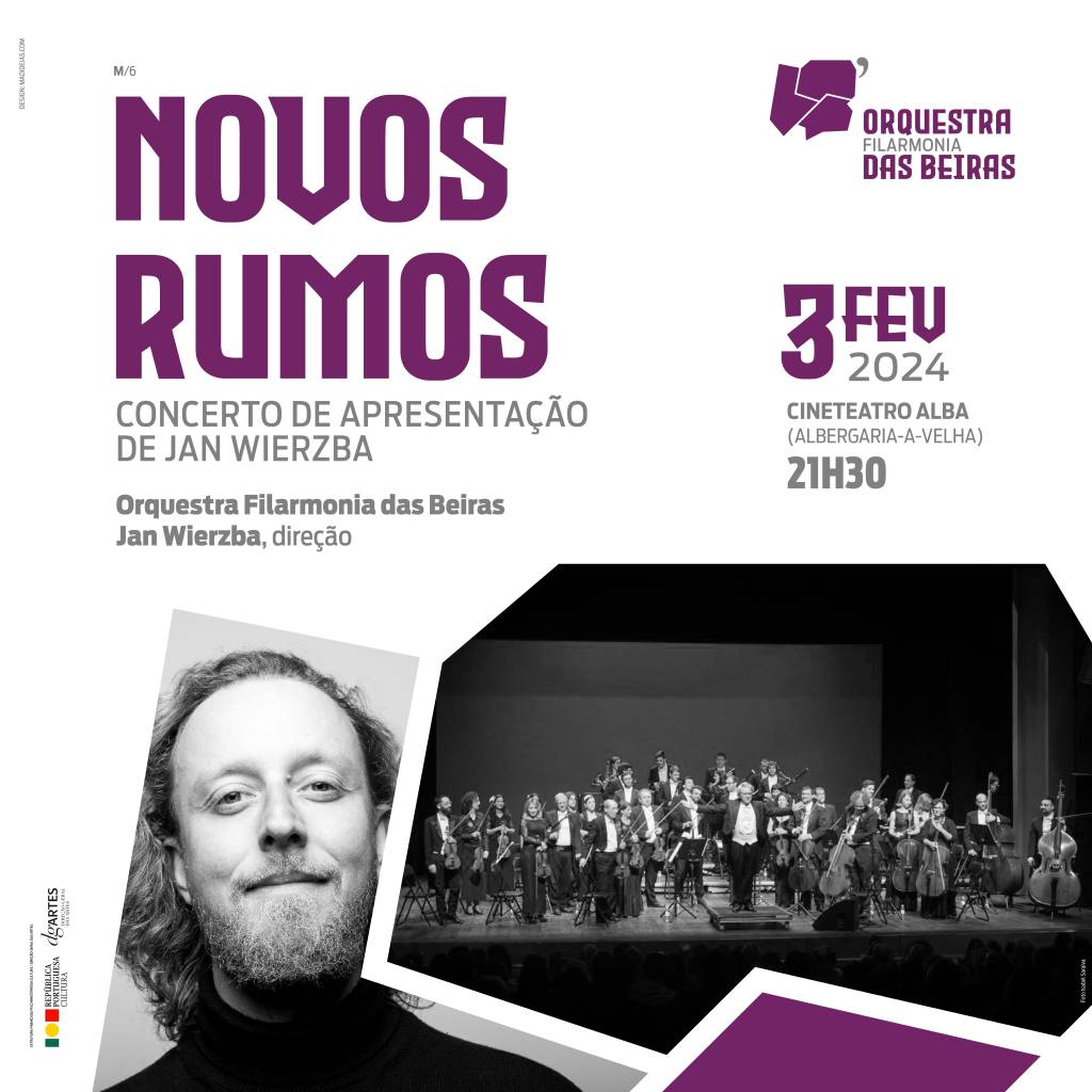 A Orquestra Filarmonia das Beiras tem o prazer de anunciar o concerto de apresentação do novo diretor artístico e maestro titular Jan Wierzba, que se realizará no dia 03 de fevereiro de 2024, às 21h30, no prestigioso Cineteatro Alba, em Albergaria-aVelha.