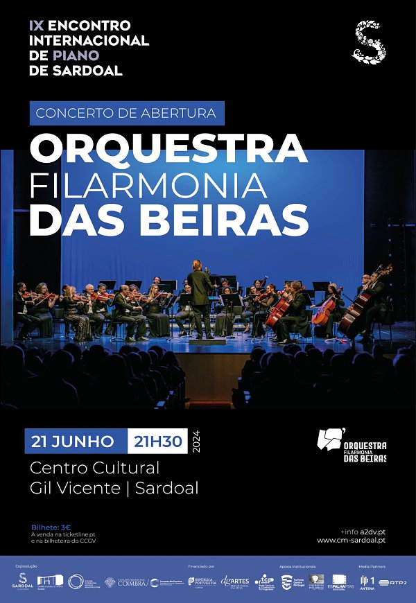 A Orquestra Filarmonia das Beiras apresenta o concerto de abertura do IX Encontro Internacional de Piano do Sardoal com o pianista Manuel Araújo e o trompetista Pedro Pacheco, solista A…